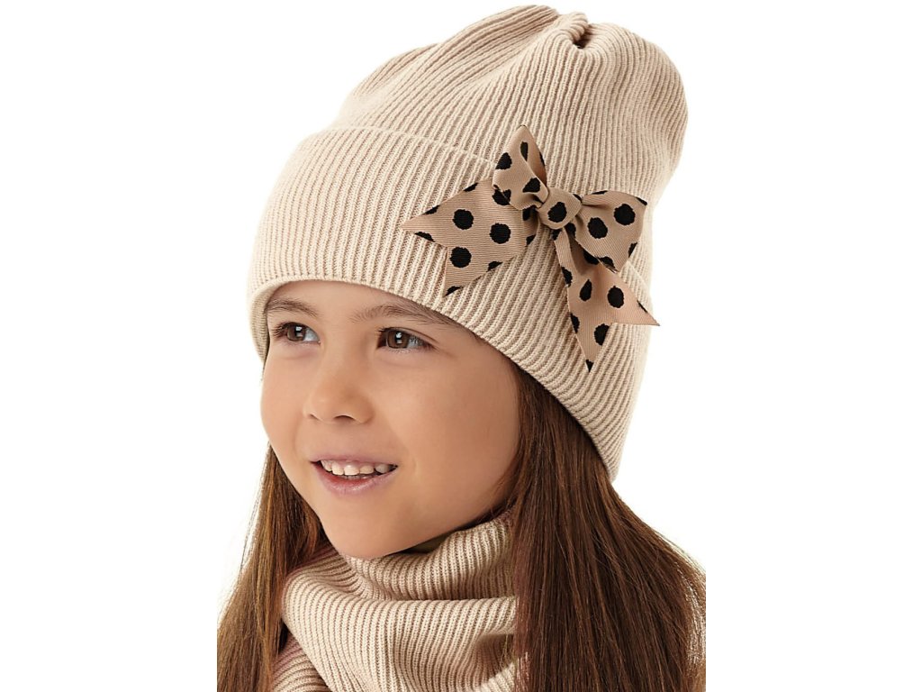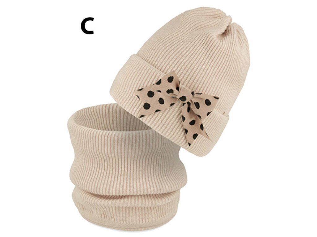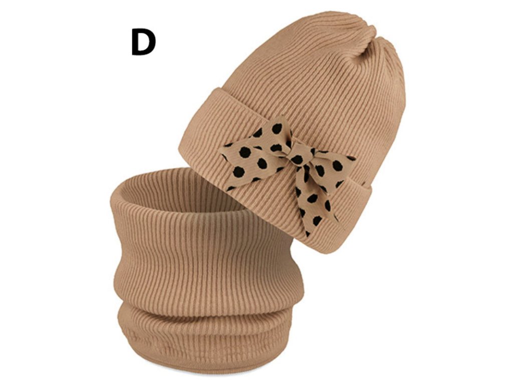 Dívčí čepice z dvojitého tenkého úpletu s ohrnutým lemem a s nákrčníkem