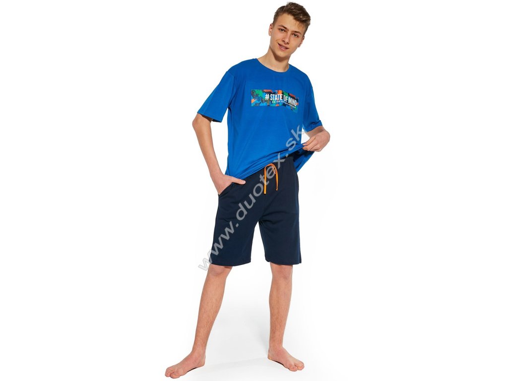 pyžamo pro starší chlapce s krátkým rukávem a krátkými kalhotami, všívané boční kapsy. Pyžamo je vyrobeno ze 100% bavlněného úpletu, v pase má všívanou širokou gumu a tunel se šňůrkou.