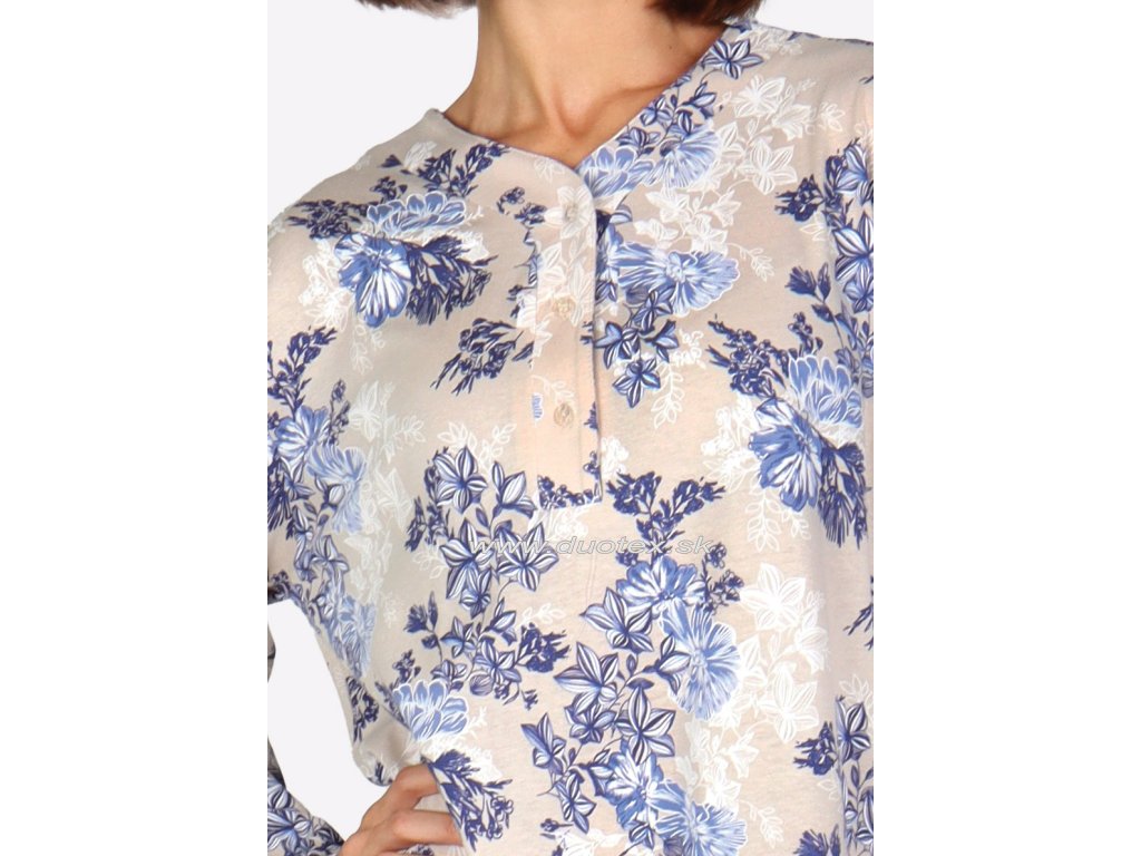 Dámská noční košile s dlouhým rukávem a krátkou rozepínací légou.