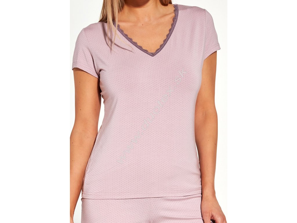 Dámské pyžamo s krátkým rukávem a krátkými kalhotami s všívanou gumou v pase.