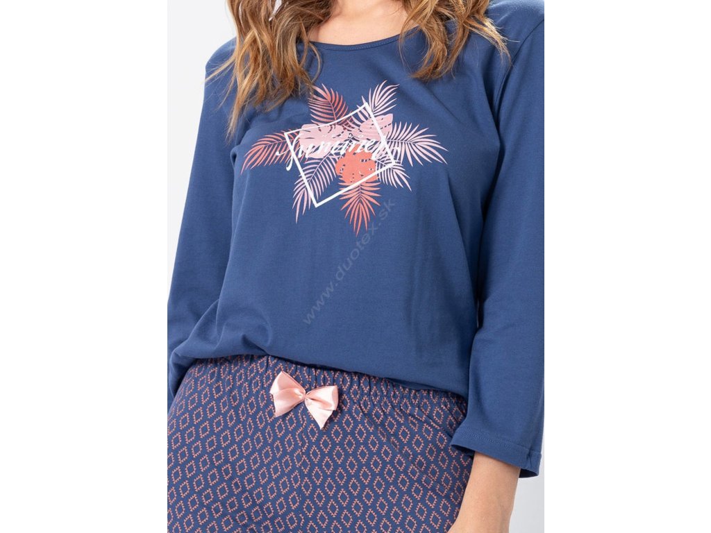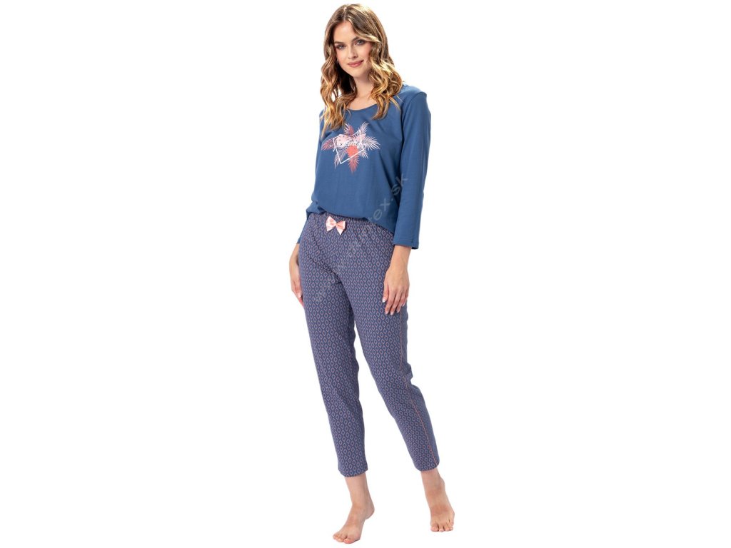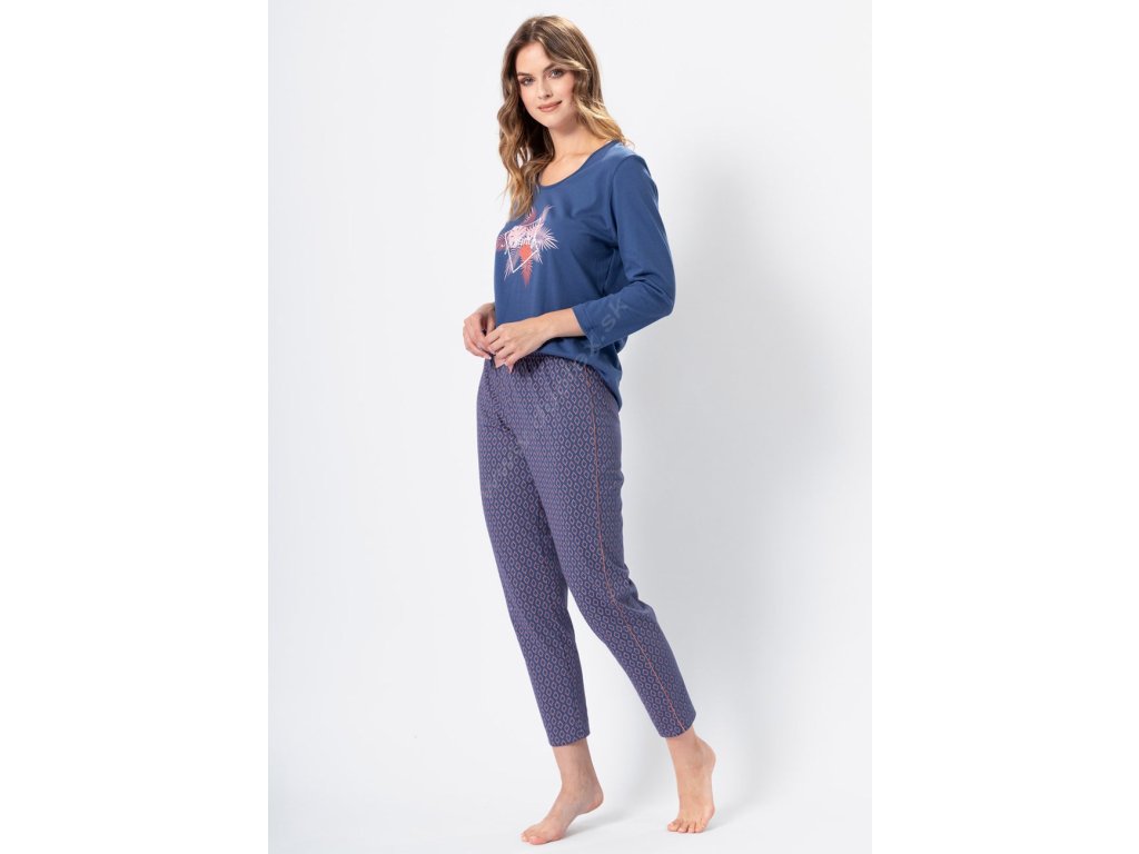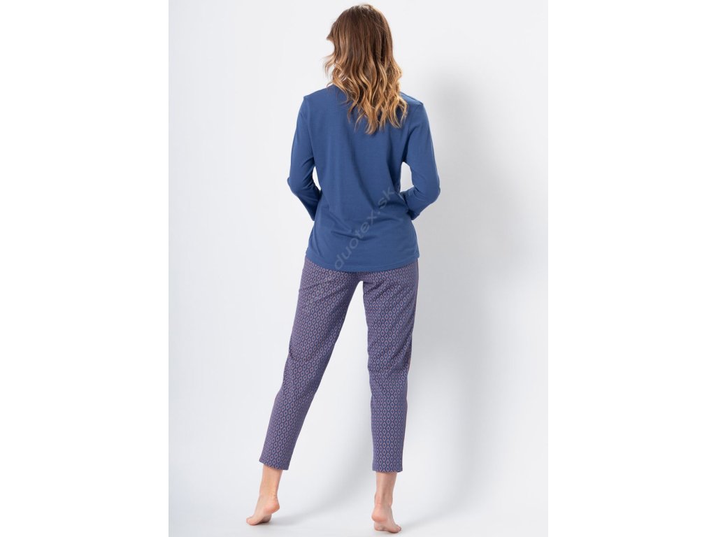 dámské pyžamo s dlouhými rukávy a dlouhými kalhotami vyrobené ze 100% bavlněného úpletu. V pase kalhot je všívaná guma.
