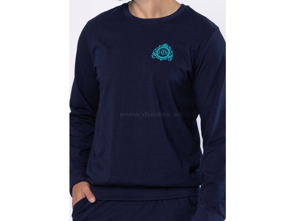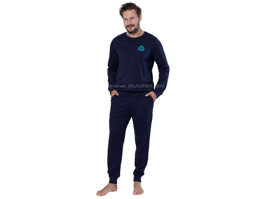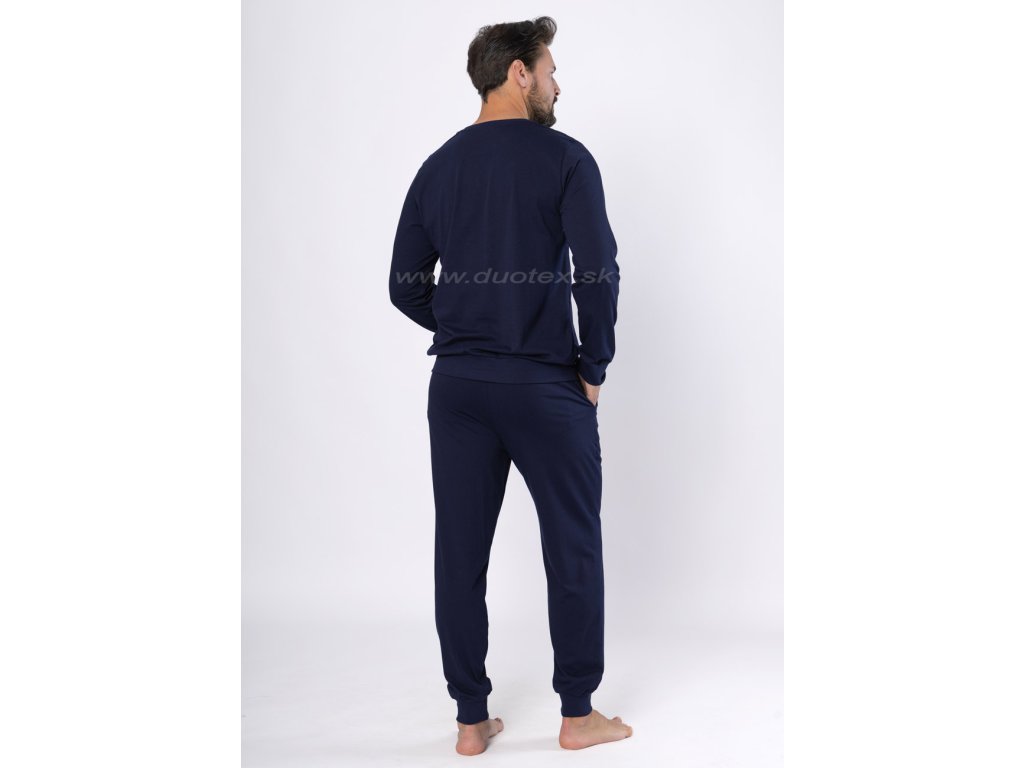 Pánské pyžamo s dlouhým rukávem a dlouhými kalhotami - navlékaná guma v pase kalhot, rukávy a kalhoty ukončené pružným patentem