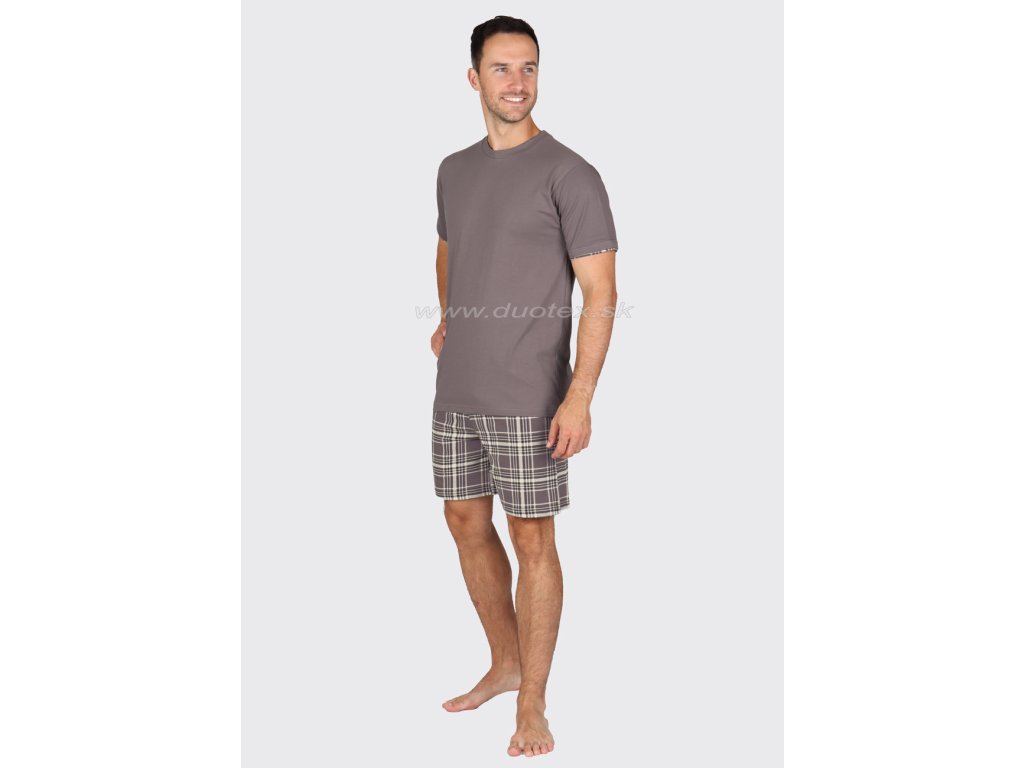 Pánské pyžamo s krátkým rukávem a krátkými kalhotami vyrobené ze 100% bavlněného úpletu, všívaná guma v pase kalhot