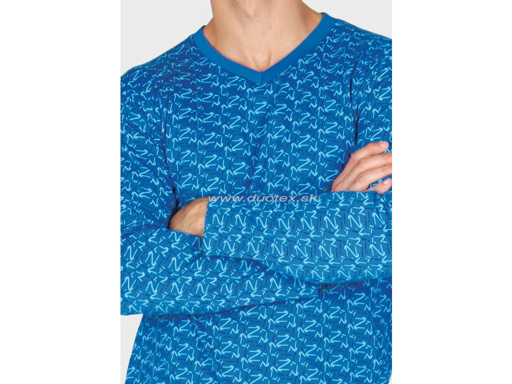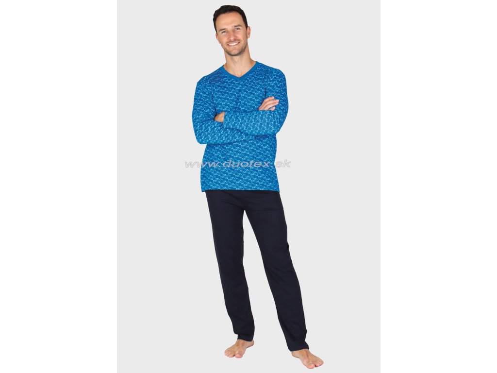 Pánské pyžamo s dlouhým rukávem a dlouhými kalhotami vyrobeno ze 100% bavlněného úpletu, navlékaná guma v pase kalhot