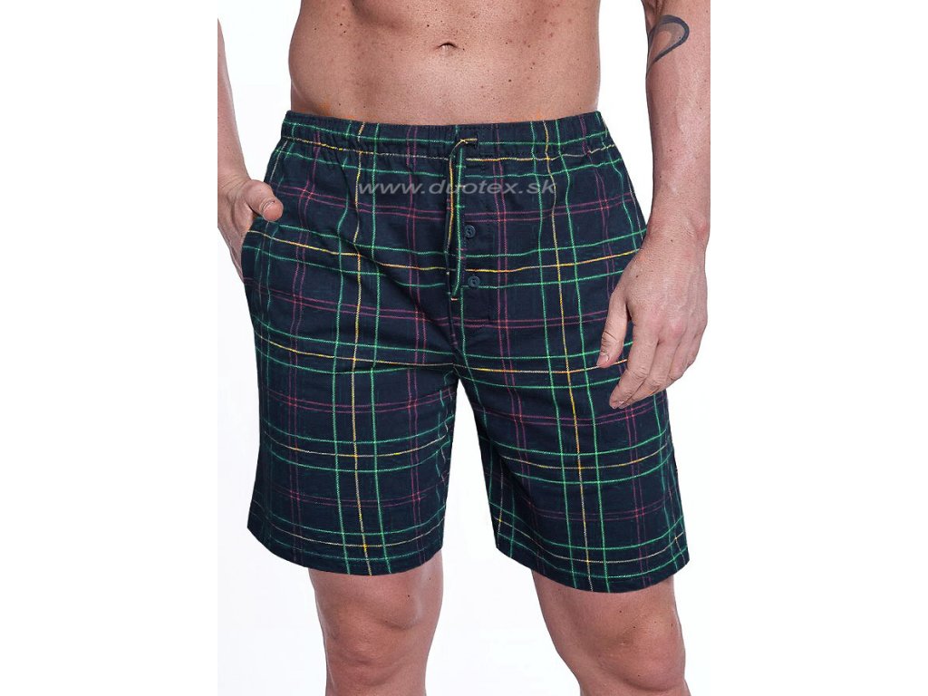 Pánské krátké pyžamové kalhoty s bočními kapsami vyrobené z kvalitního 100% bavlněného úpletu. V pase je všívaná široká guma a tunel se šňůrkou na stahování.