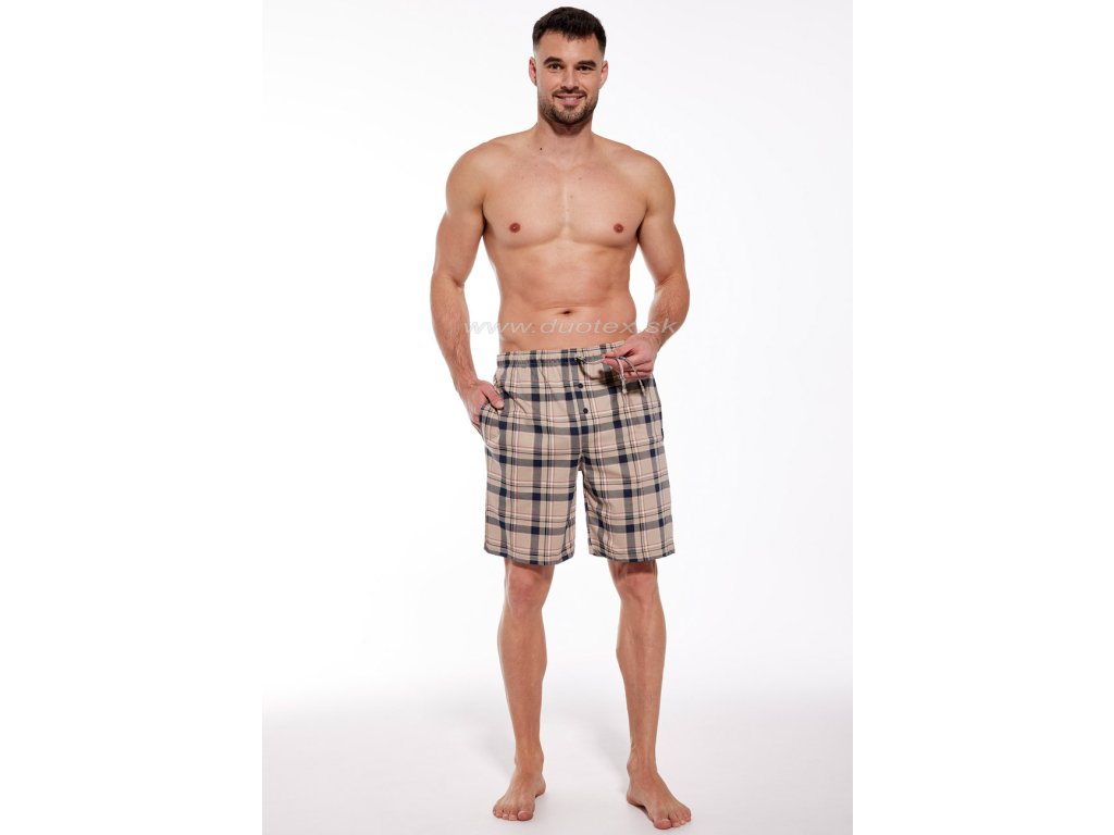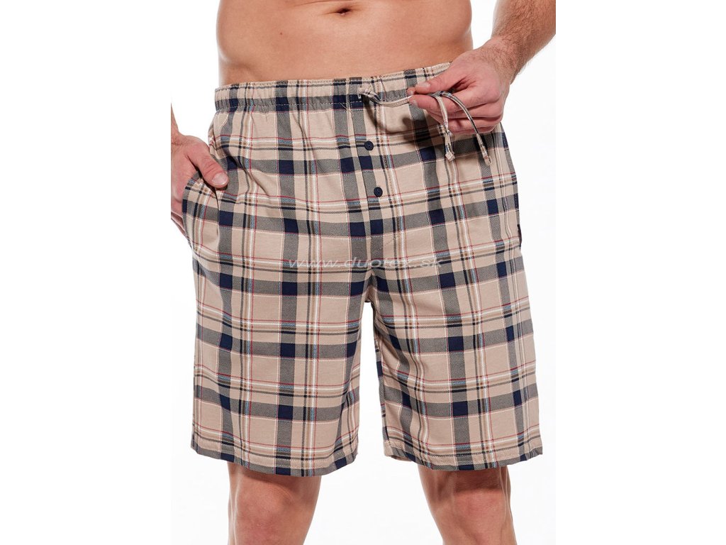 Pánské krátké pyžamové kalhoty s bočními kapsami vyrobené z kvalitního 100% bavlněného úpletu. V pase je všívaná široká guma a tunel se šňůrkou na stahování.