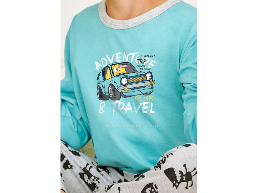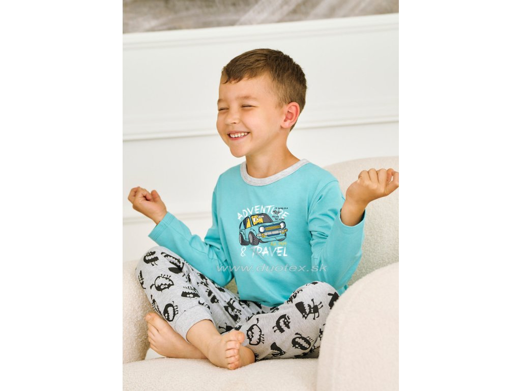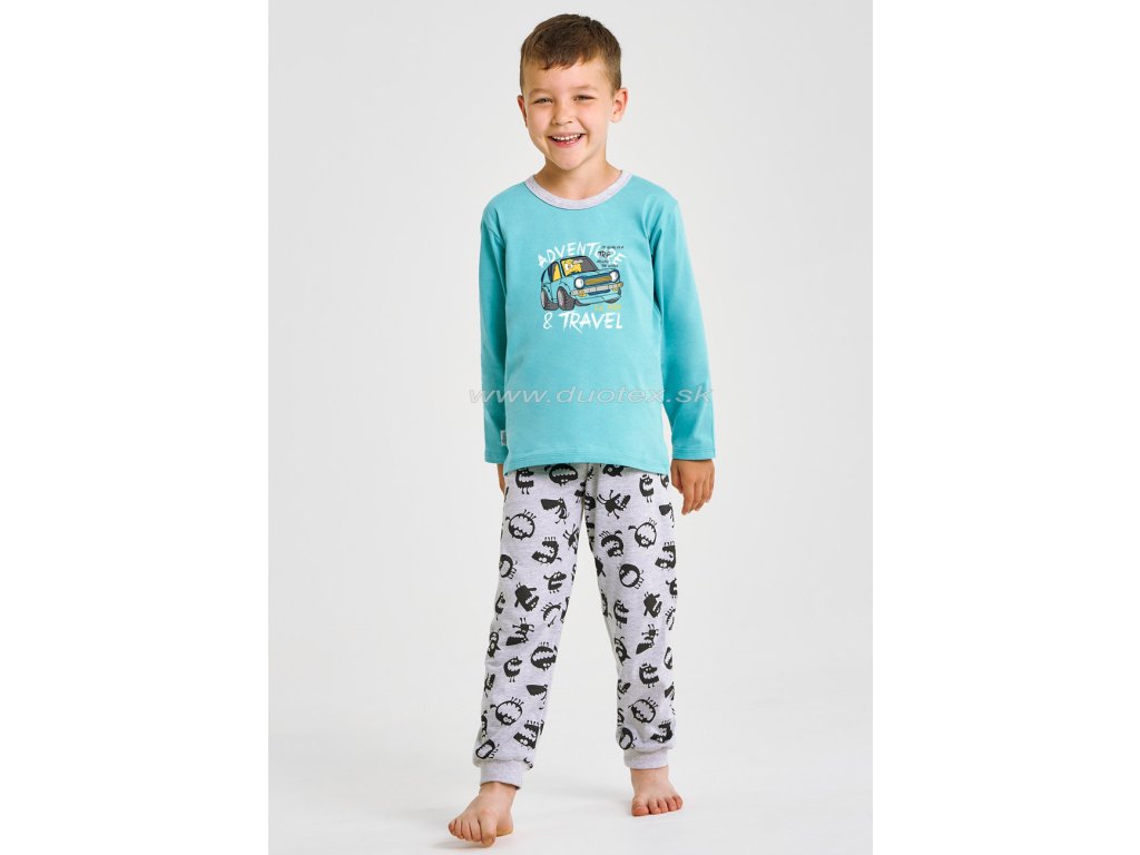 Chlapčenské pyžamo s dlhým rukávom a dlhými nohavicami vyrobené z bavlneného úpletu - všívaná guma v páse nohavíc