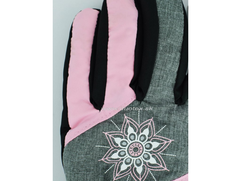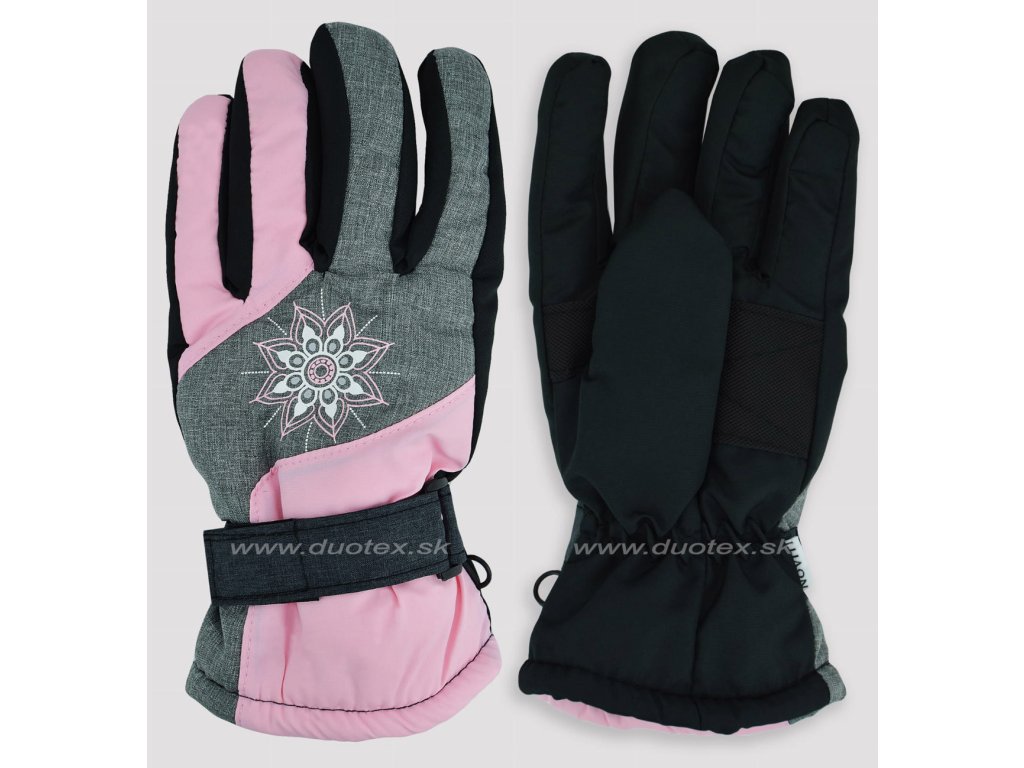 Detské teplé rukavice lyžiarského typu. Rukavičky majú elastickú manžetu a vnútro je vyteplené hrubou hrejivou vrstvou. V oblasti  dlane je opatrená pogumovaným materiálom.