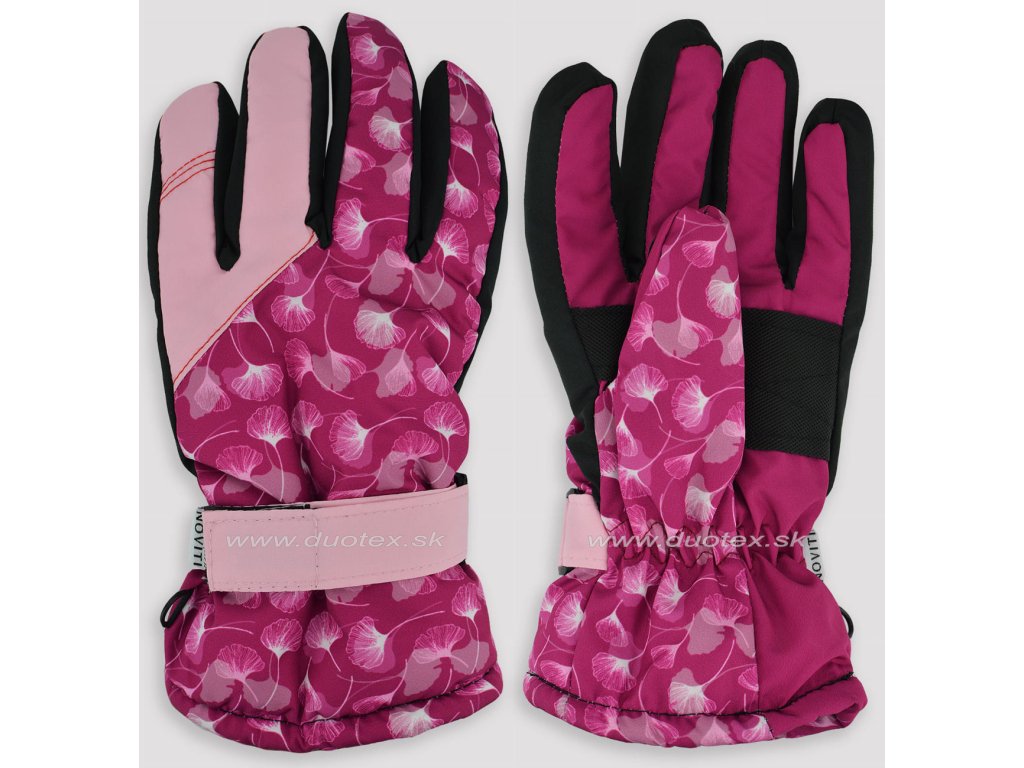 Dámske teplé rukavice lyžiarského typu. Rukavice majú elastickú manžetu a vnútro je vyteplené hrubou hrejivou vrstvou. V oblasti  dlane je opatrená pogumovaným materiálom.