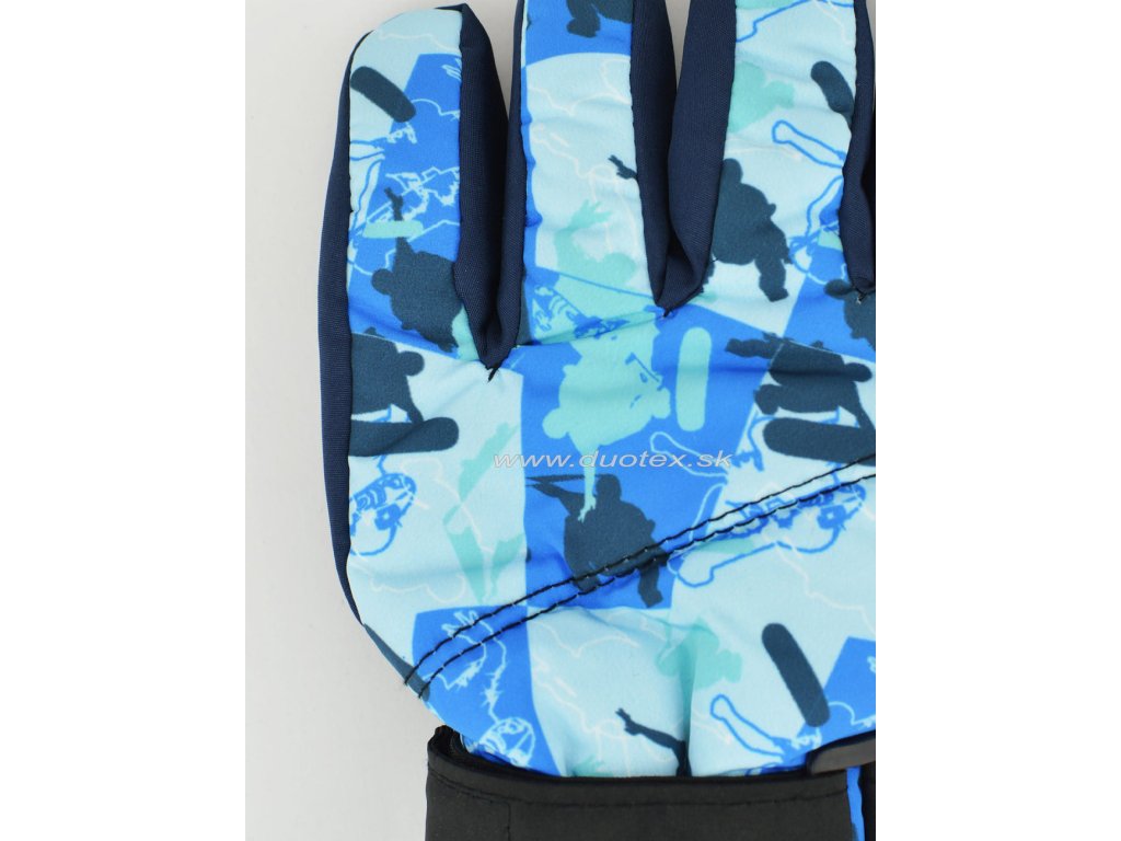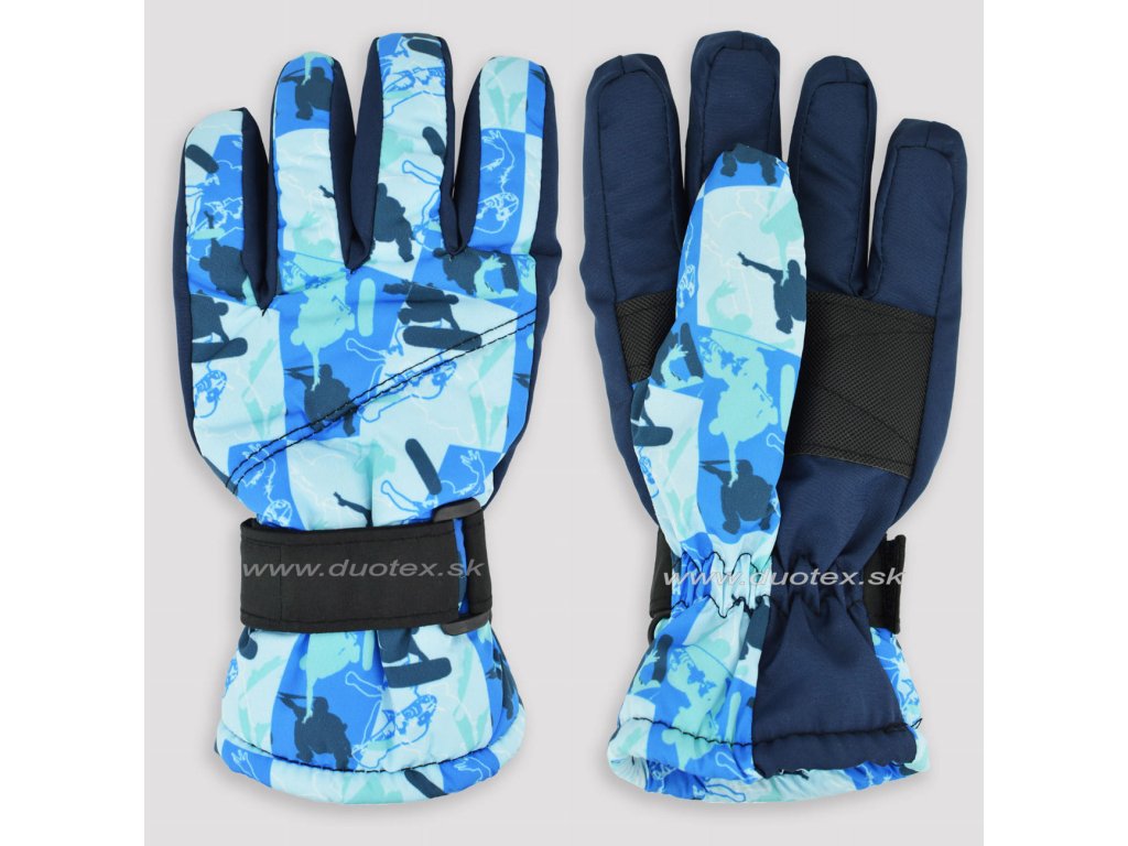 Detské teplé rukavice lyžiarského typu. Rukavičky majú elastickú manžetu a vnútro je vyteplené hrubou hrejivou vrstvou. V oblasti  dlane je opatrená pogumovaným materiálom.