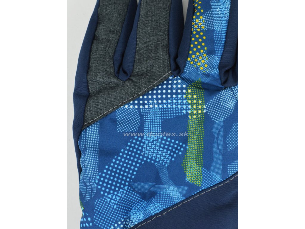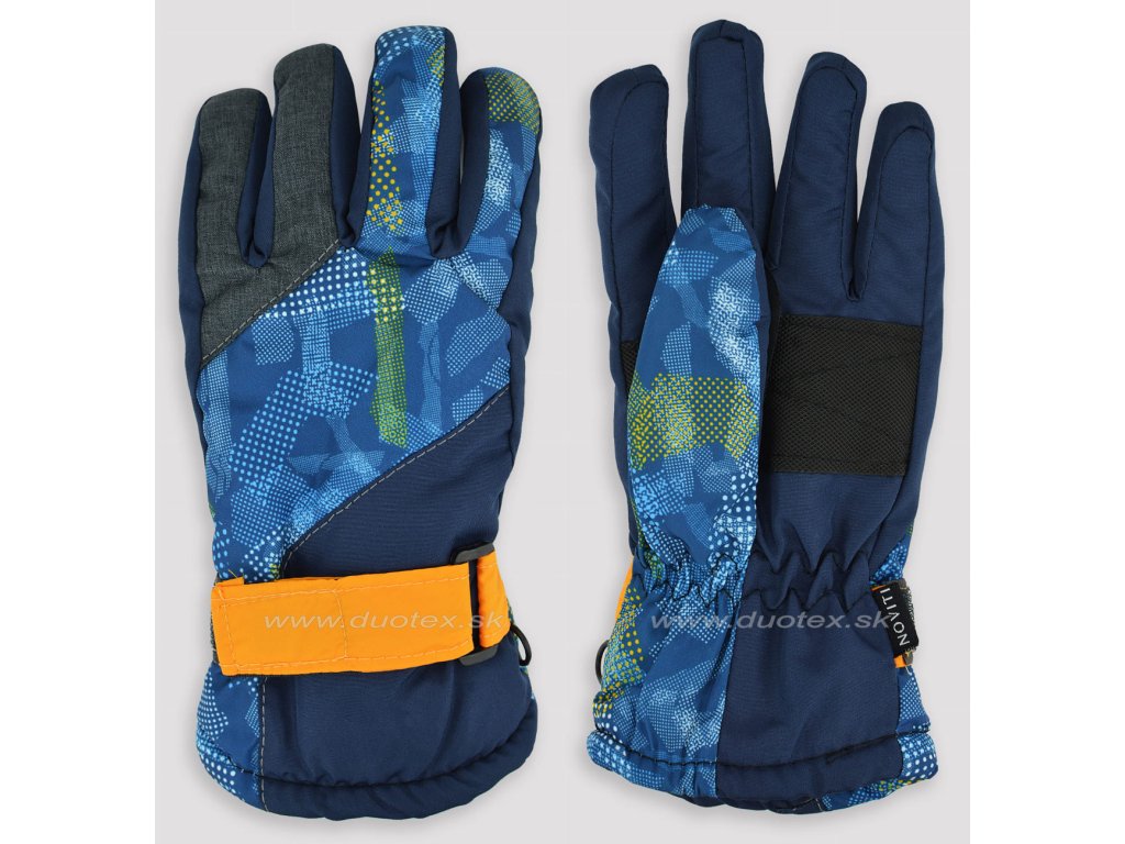 Detské teplé rukavice lyžiarského typu. Rukavičky majú elastickú manžetu a vnútro je vyteplené hrubou hrejivou vrstvou. V oblasti  dlane je opatrená pogumovaným materiálom.