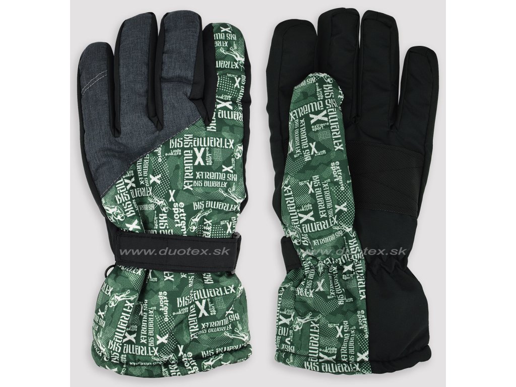 Pánske teplé rukavice lyžiarského typu. Rukavice majú elastickú manžetu a vnútro je vyteplené hrubou hrejivou vrstvou. V oblasti dlane je opatrená pogumovaným materiálom.