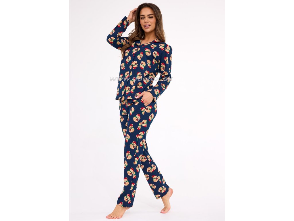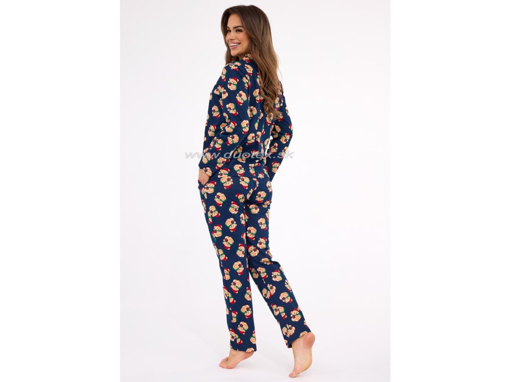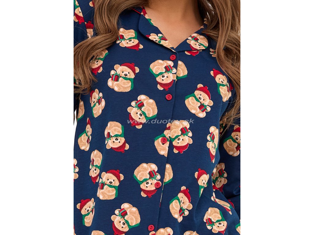 Dámske vianočné pyžamo s dlhým rukávom a nohavicami a zapínaním na gombíky. Je vyrobené zo 100% jemného bavlneného úpletu - všívaná široká guma v páse nohavíc. Pyžamo je súčasťou rodinnej kolekcie Teddy.