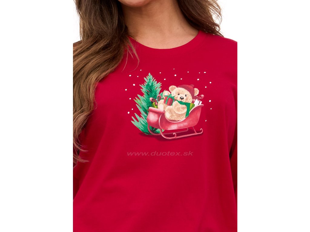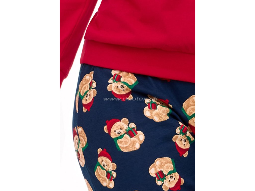 Dámske vianočné pyžamo s dlhým rukávom a dlhými nohavicami ukončé pružnými patentami. Je vyrobené zo 100% bavlneného úpletu - všívaná guma v páse. Pyžamo je súčasťou rodinnej kolekcie Teddy.