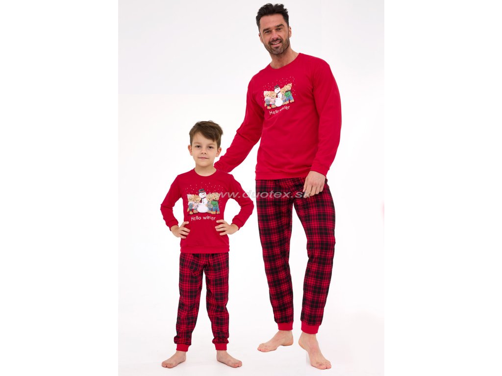 Pánské vánoční pyžamo s dlouhým rukávem a dlouhými kalhotami ukončené pružnými patenty. Je vyrobeno ze 100% bavlněného úpletu - všívaná guma v pase. Pyžamo je součástí rodinné kolekce Winter.